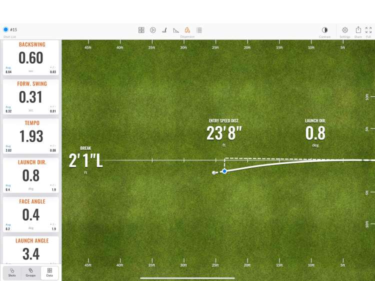 TrackMan can be used for putting as well. On the green it delivers similar data to the full swing, but with some key additions for putting regarding the timing and tempo of the stroke. It has helped players make big leaps in their ability to control their speed on the greens as well as gaining a better understanding for why things are happening.